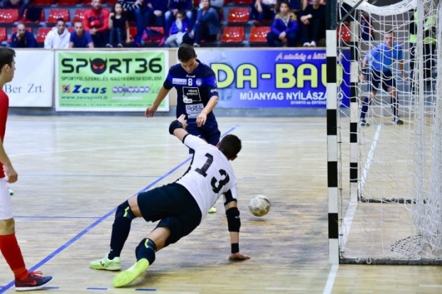 A veszprémiek harcosan és szellemesen futsaloztak, egyértelműen ráerőltették akaratukat a visszafogott teljesítményt nyújtó riválisra. Öt perccel a szünet előtt ismét a mieink előtt adódtak helyzetek. Boromisza Gábor szép mozdulattal lőtt sarokkal a kapura, ám Mezei ezúttal a helyén volt. Kisvártatva pedig Bognár emelése szállt kevéssel fölé.